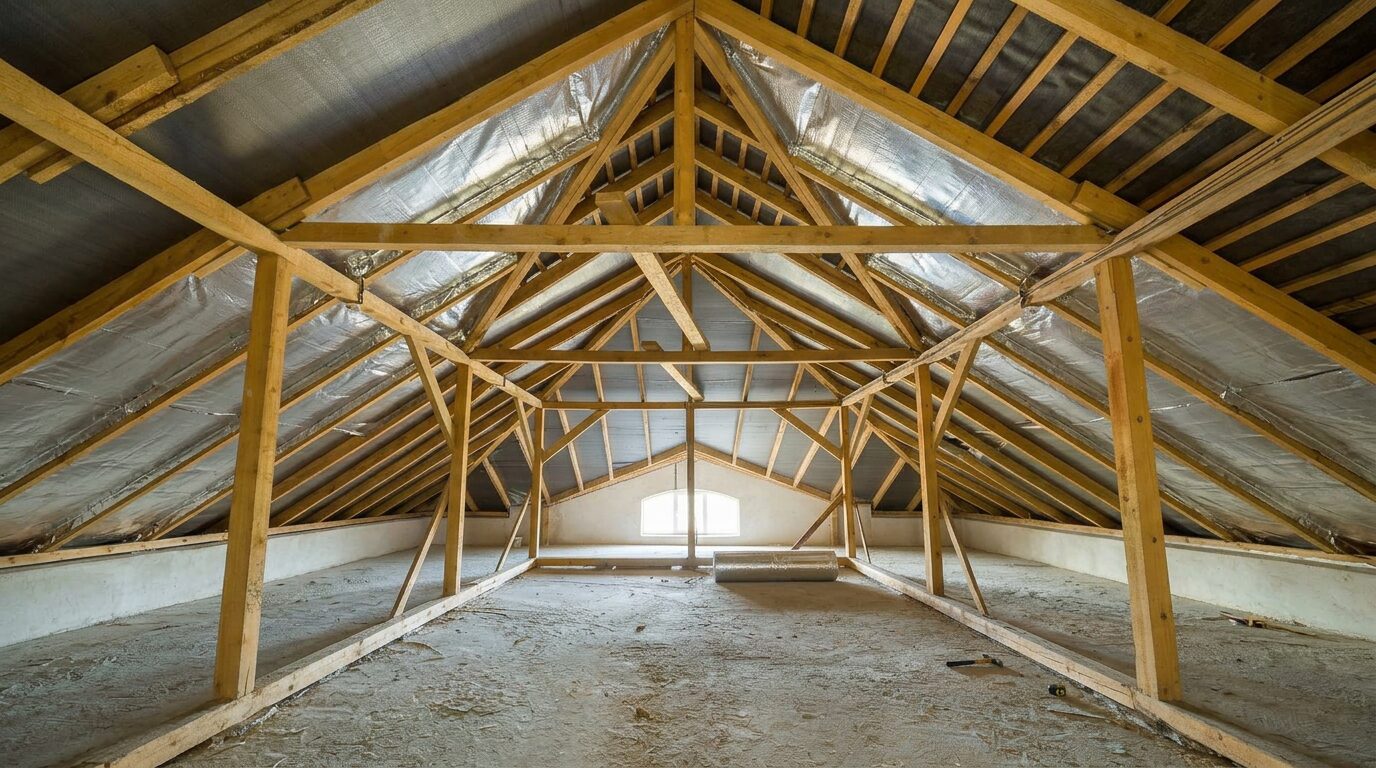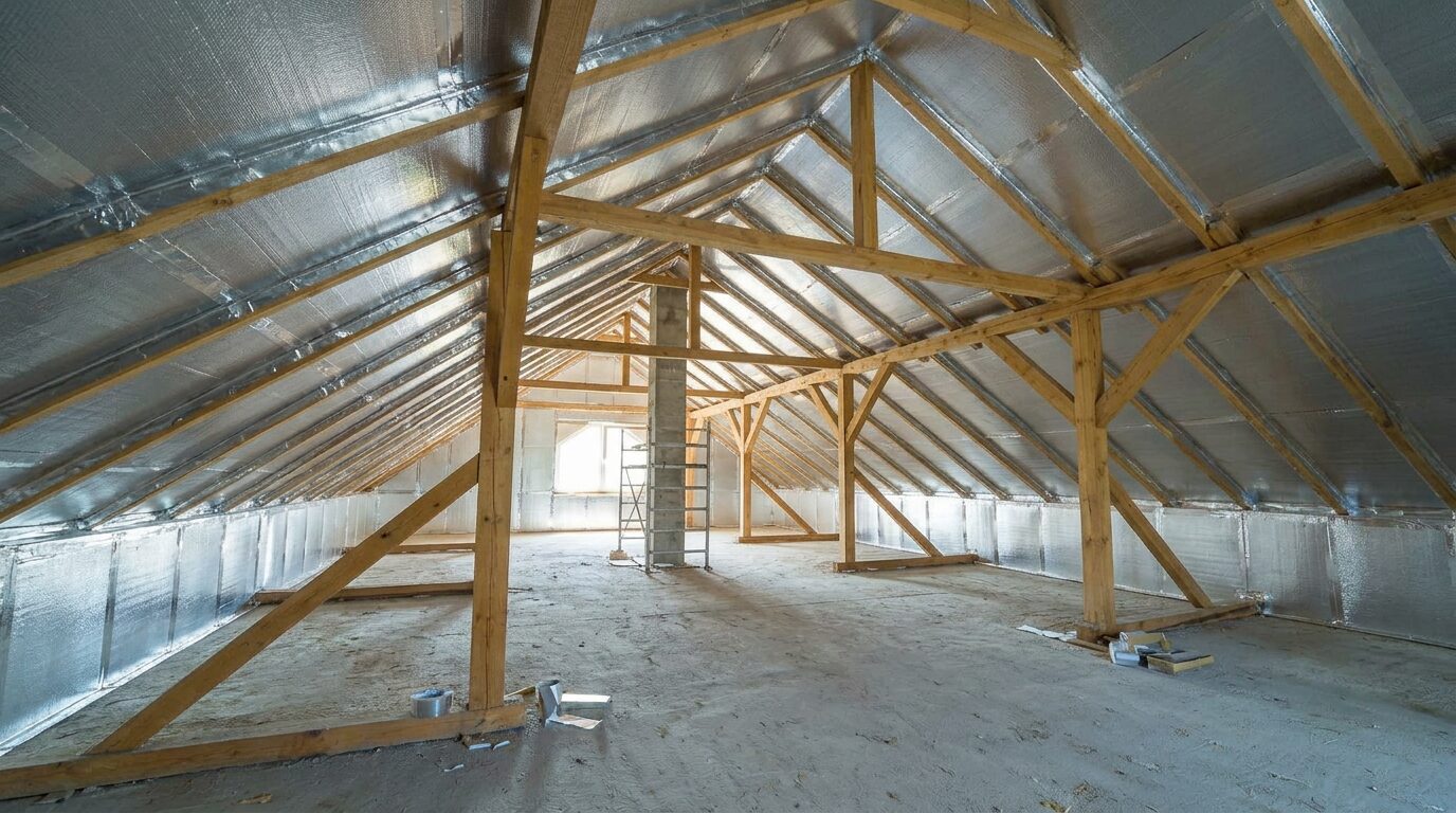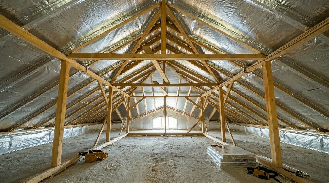 SuperFOIL uses multiple reflective layers and internal wadding to reduce heat transfer in three ways: it reflects radiant heat back into the living space, slows conductive heat flow through the roof build‑up and limits convective air movement when correctly detailed. Used above or alongside traditional loft insulation, this helps cut heat loss through the roof and maintain more stable indoor temperatures.